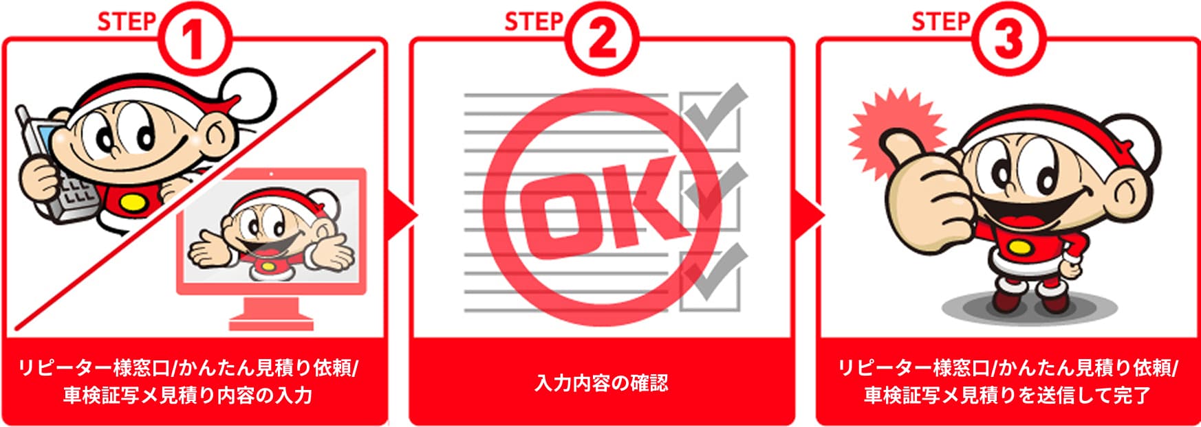 お電話もしくはフォームからリピーター様窓口・かんたん見積もり依頼・車検証写メ見積り頂けます。後ほど担当者が対応させて頂きます。