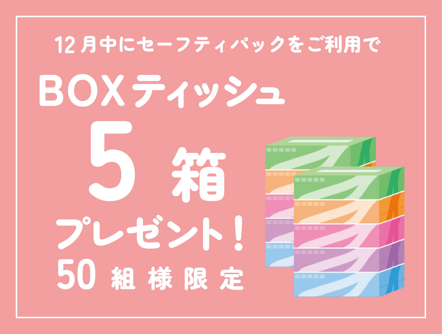 - セーフティパックご利用でBOXティッシュ5箱進呈【12月・先着50名】[2025.12.13]