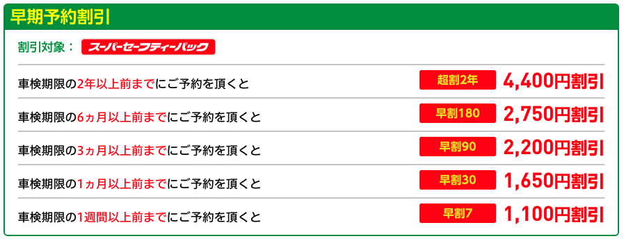 コバックでは、**車検日より前にご予約いただくと「早期予約割引」**が適用されます。