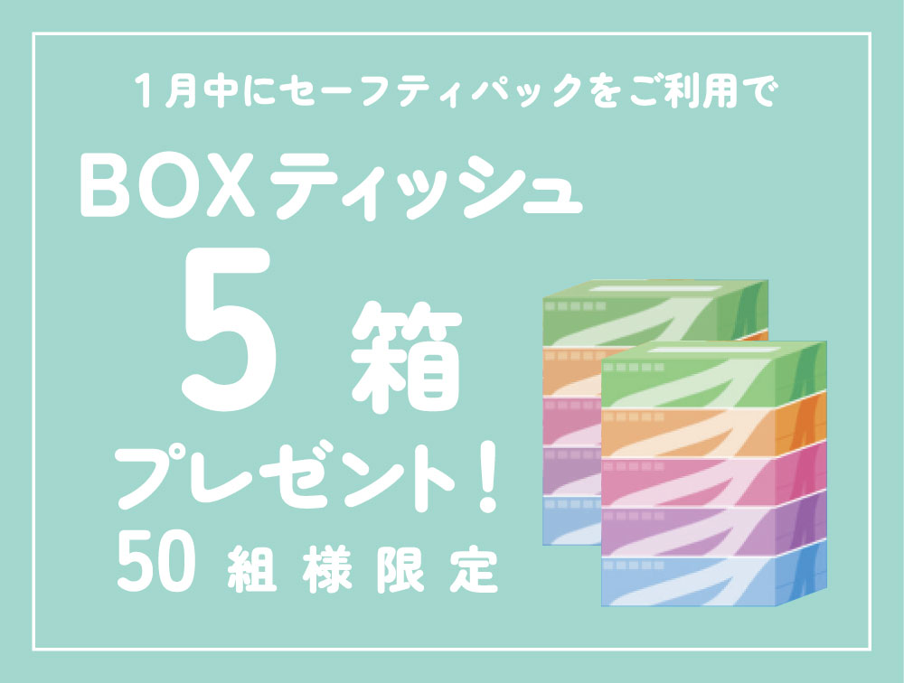 - セーフティパックご利用でBOXティッシュ5箱進呈【1月・先着50名】[2026.01.06]